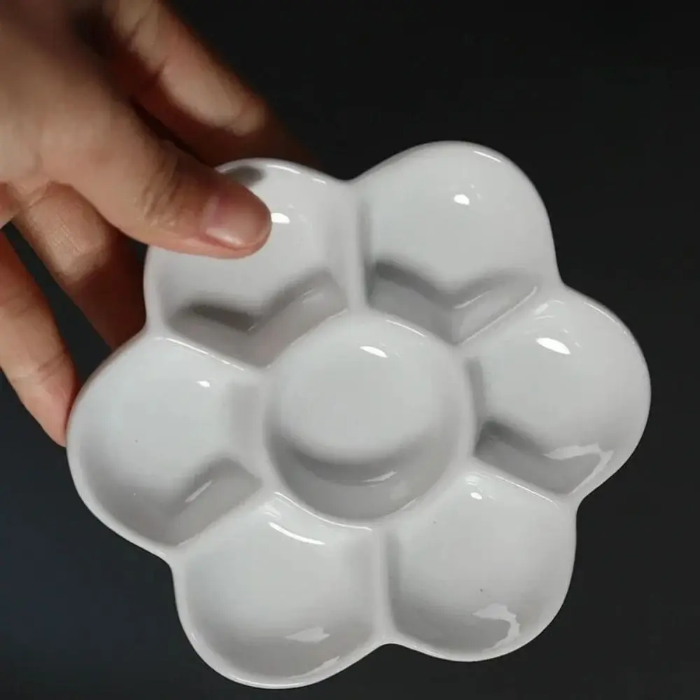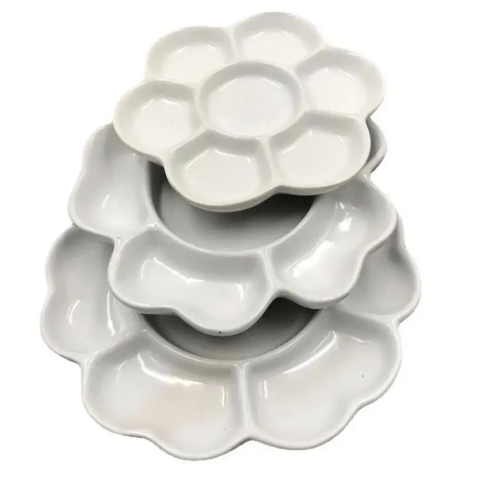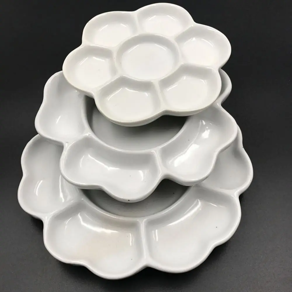 Traditional Ceramic Paint Palette Tray White Portable Porcelain Palette 3 Size Flower Shaped Plum Blossom Paint Plate for Artist