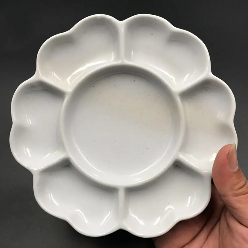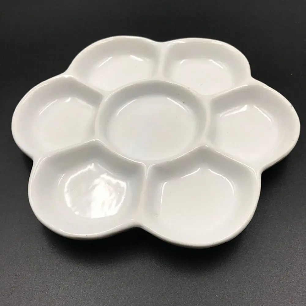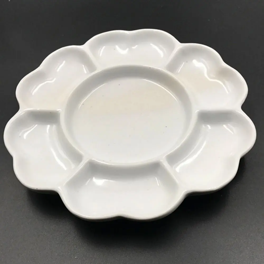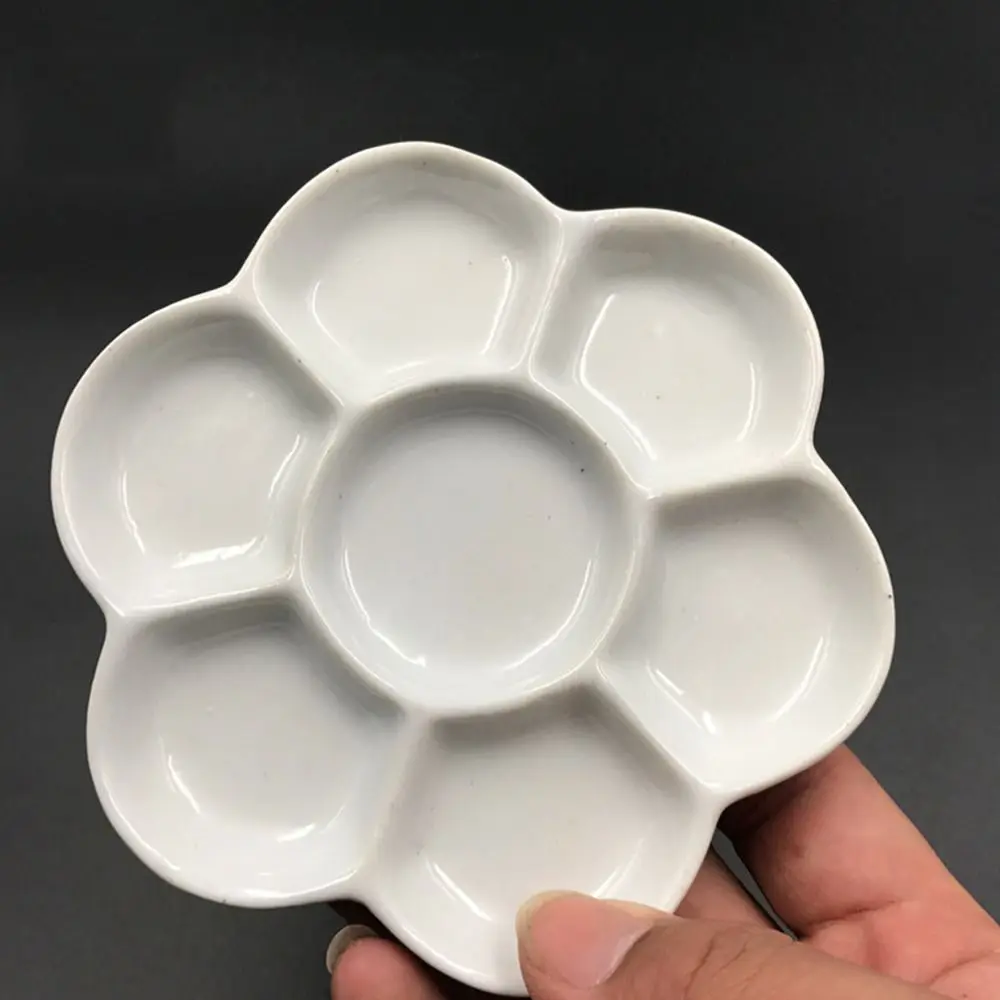 Traditional Ceramic Paint Palette Tray White Portable Porcelain Palette 3 Size Flower Shaped Plum Blossom Paint Plate for Artist