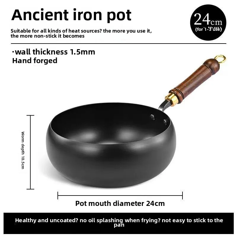 Traditional handmade forging iron pot for home use, healthy non stick pan, stir fry pan, stew pan, small iron pot