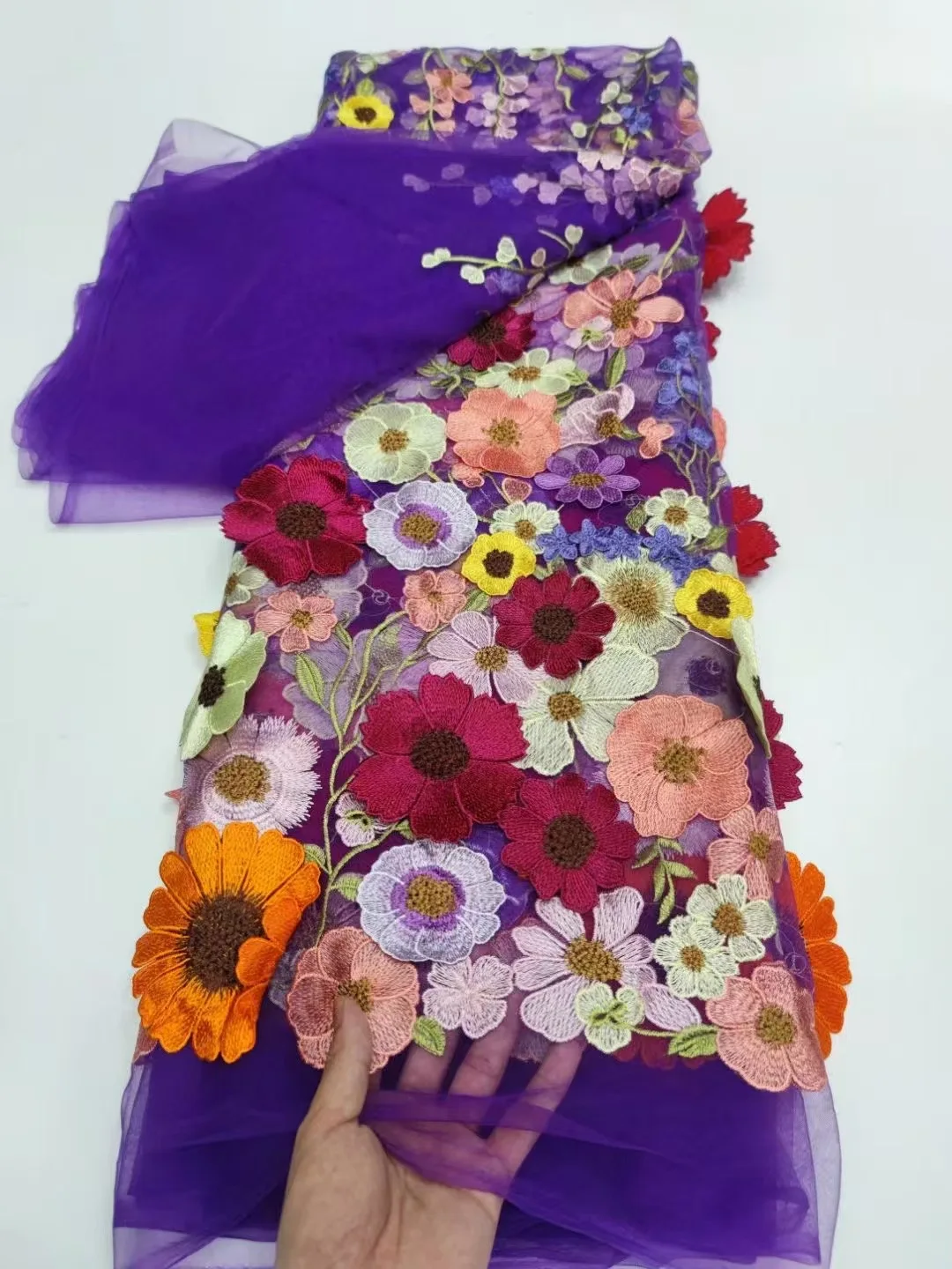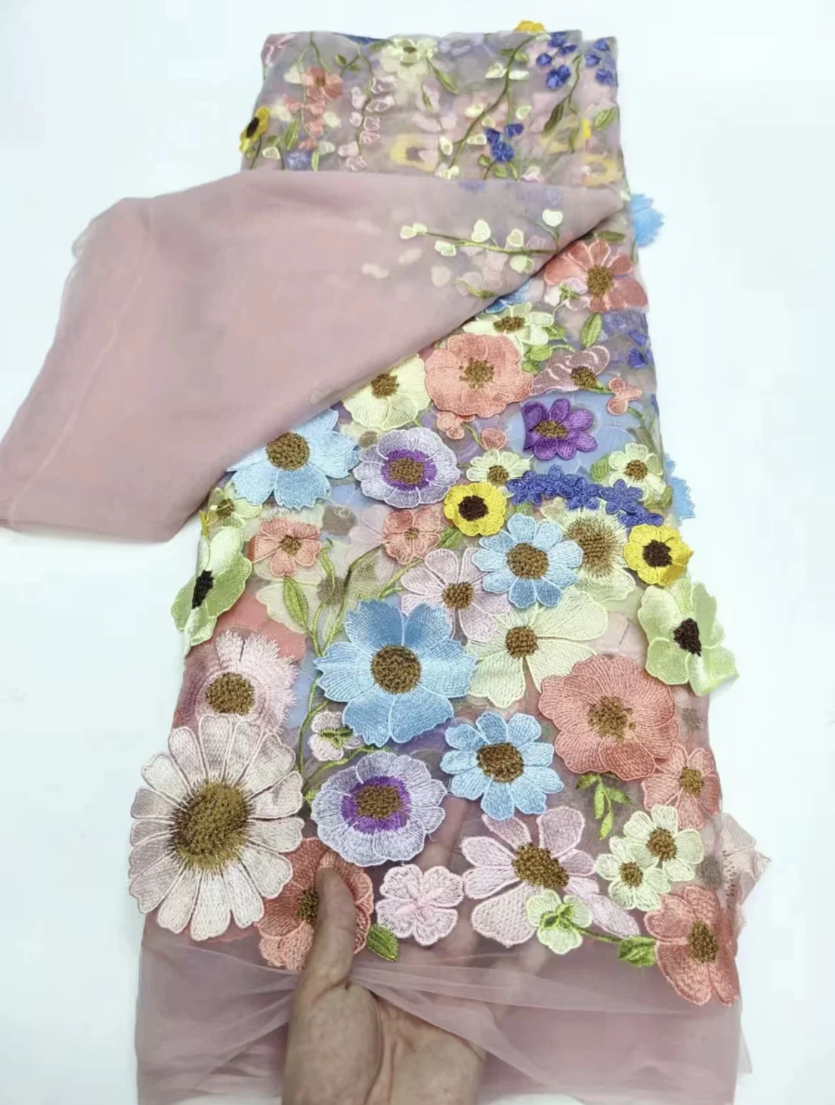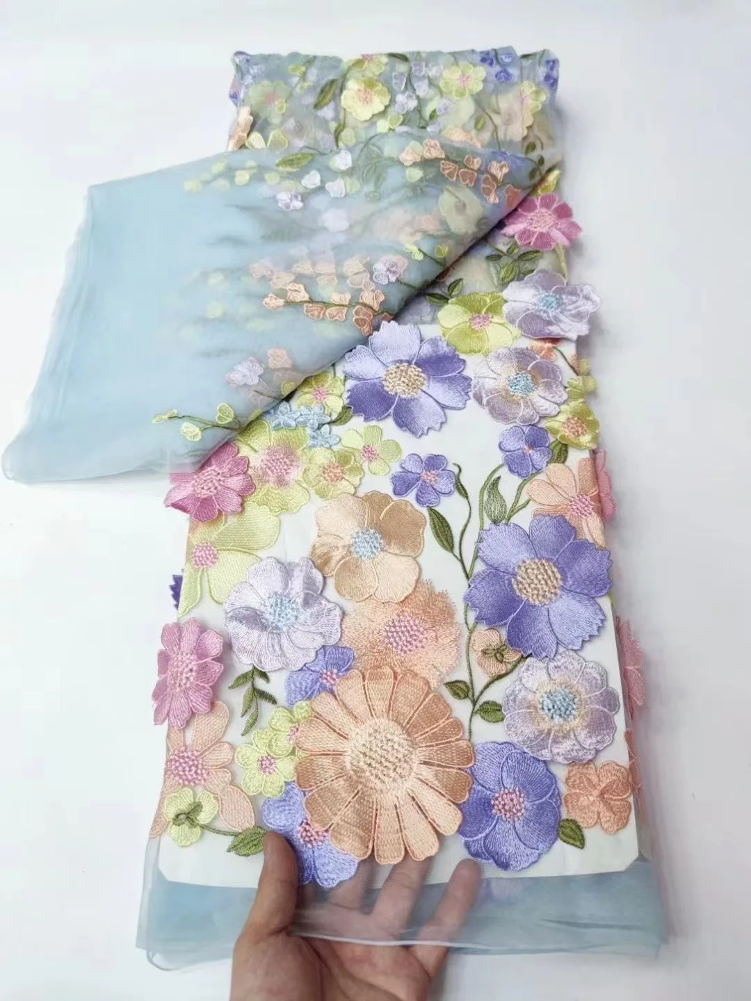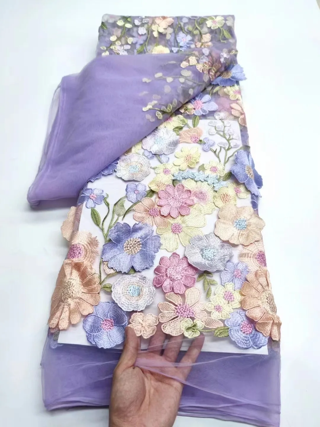 Unilateral embroidered cloth 3D applique embroidered fabric high-end women's dresses wedding dress material