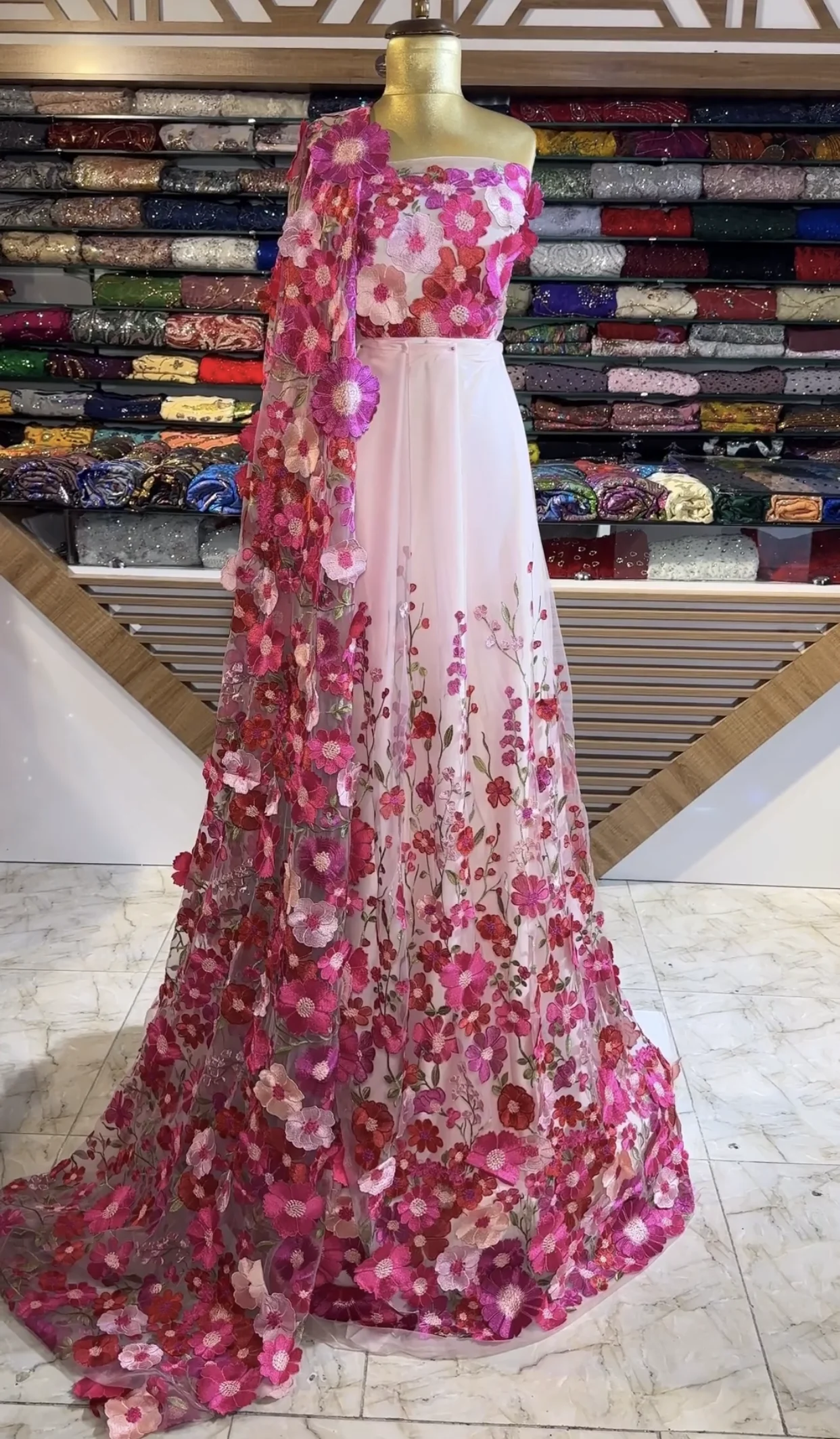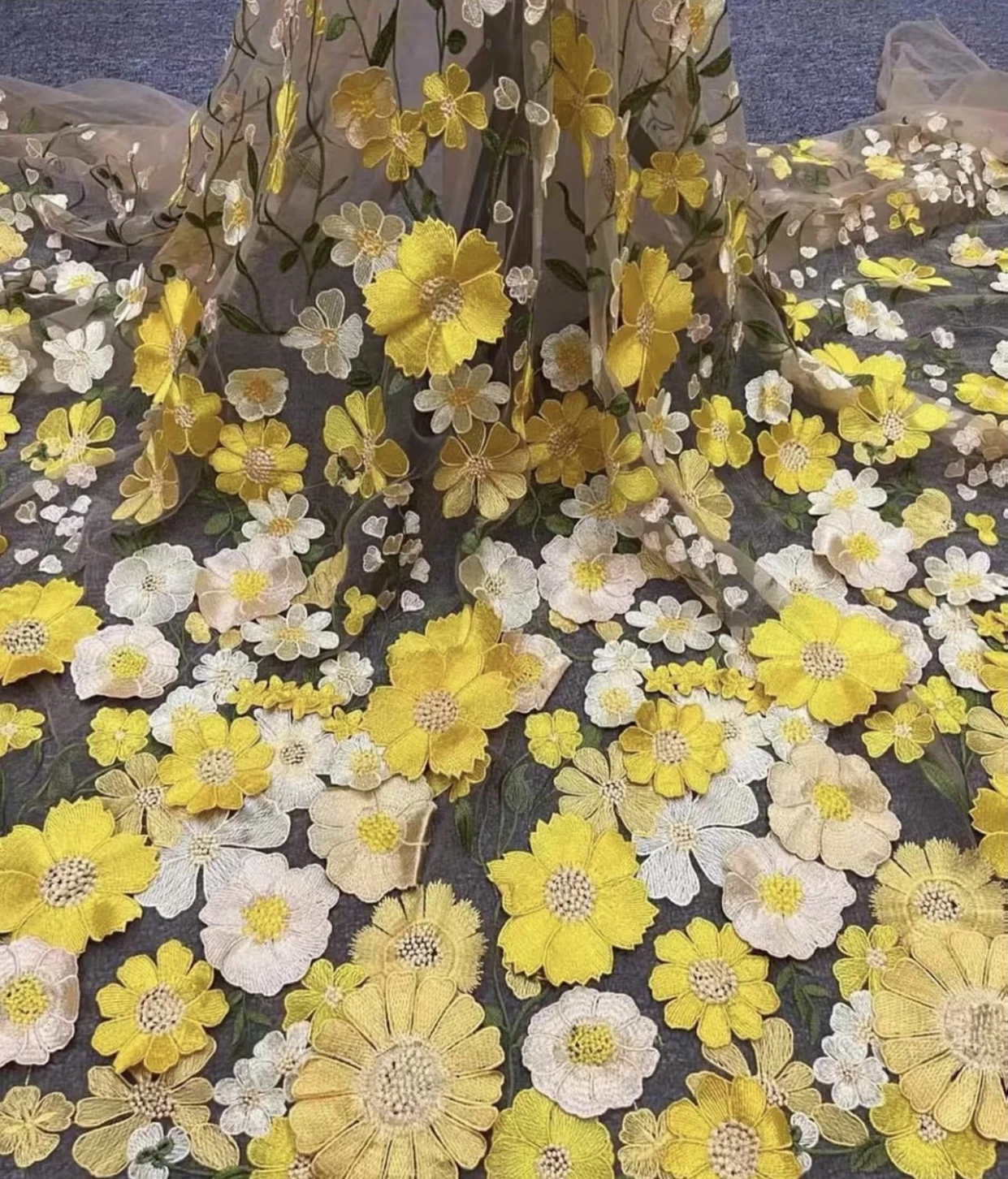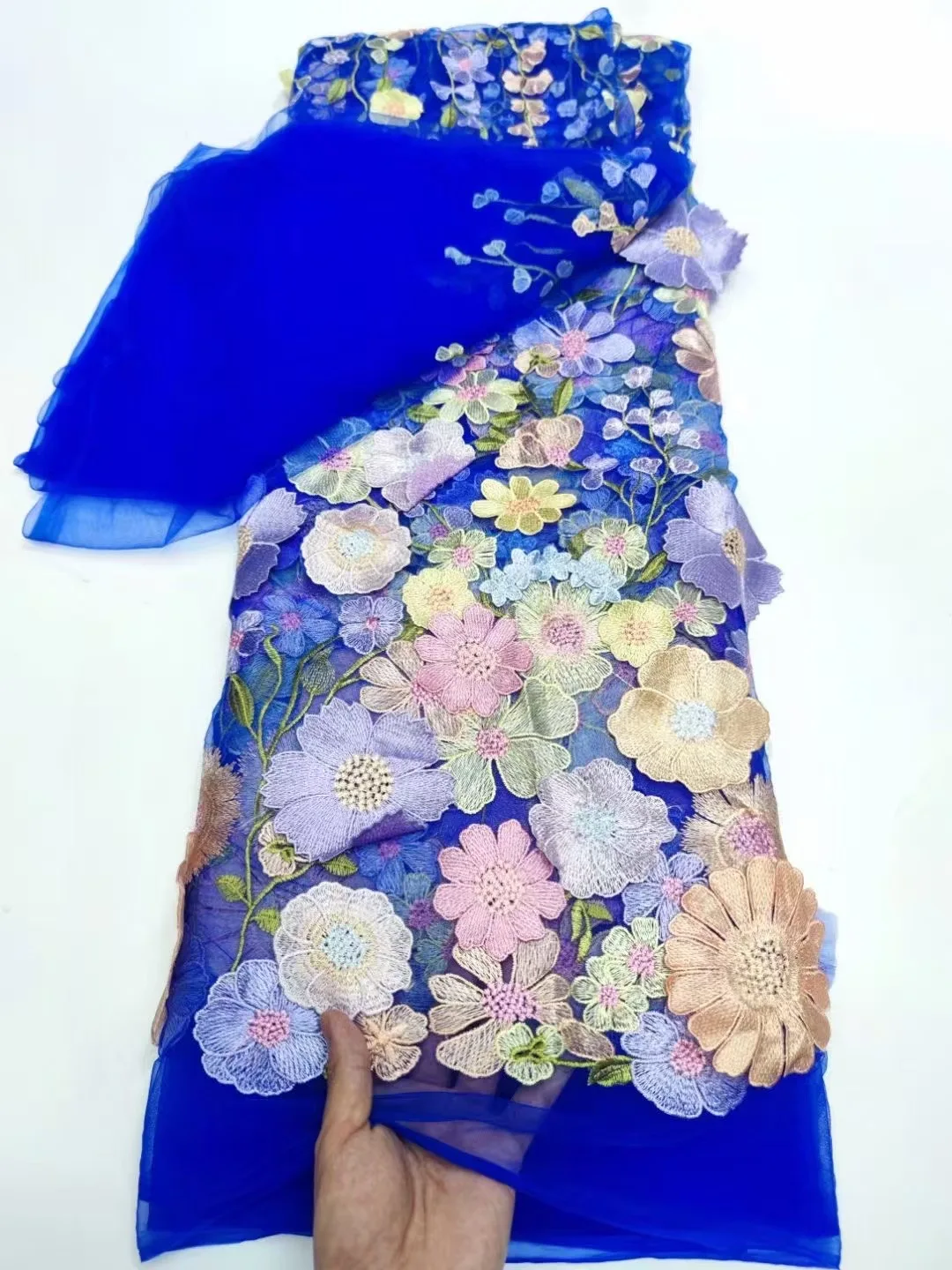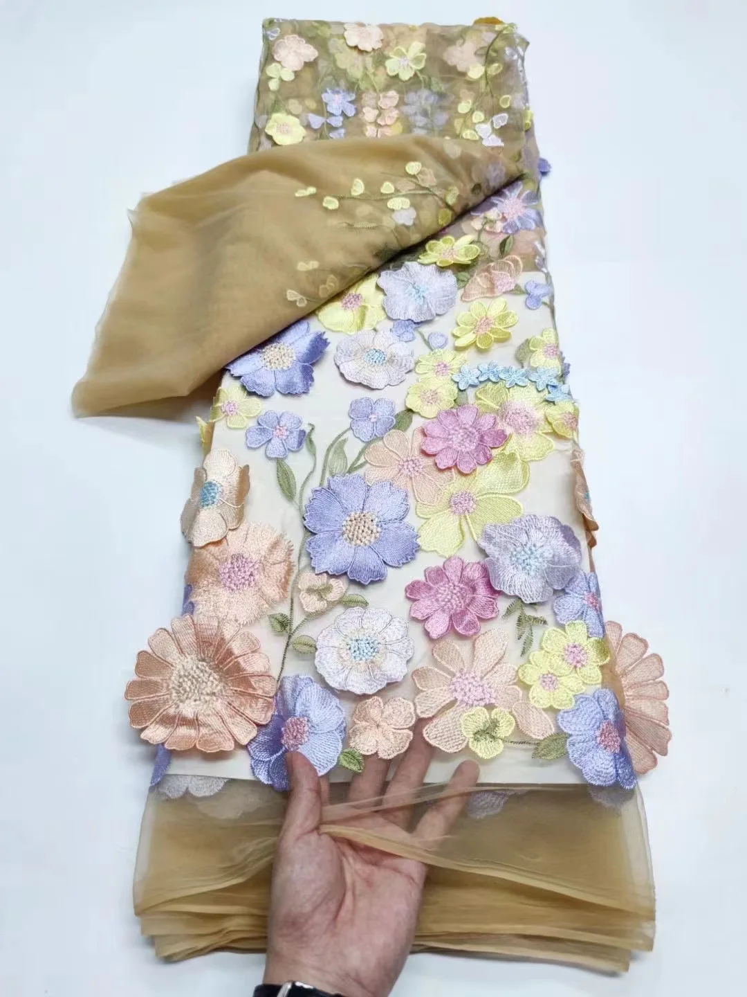 Unilateral embroidered cloth 3D applique embroidered fabric high-end women's dresses wedding dress material