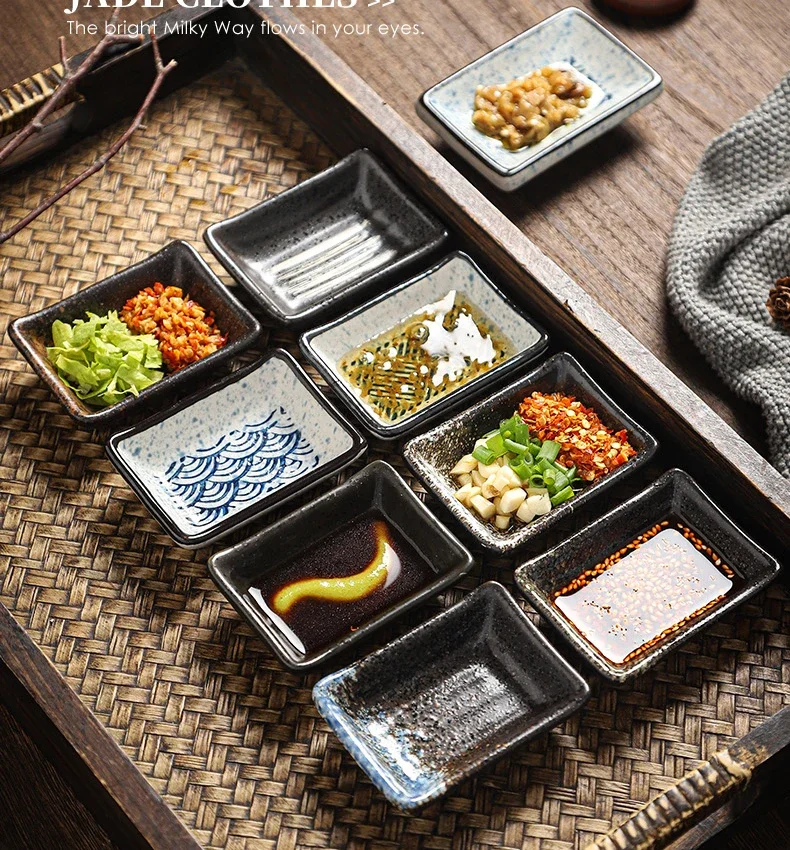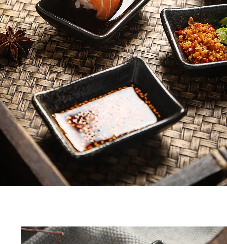 Vintage Ceramics Square Dipping Dish Japanese Small Sushi Plate Restaurant Hot Pot Sauce Plate Home Barbecue Seasoning Dishes