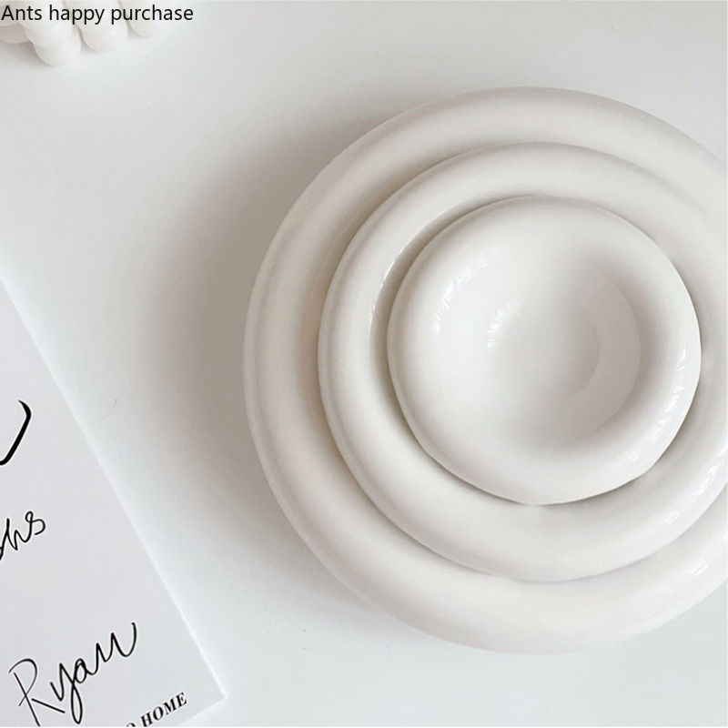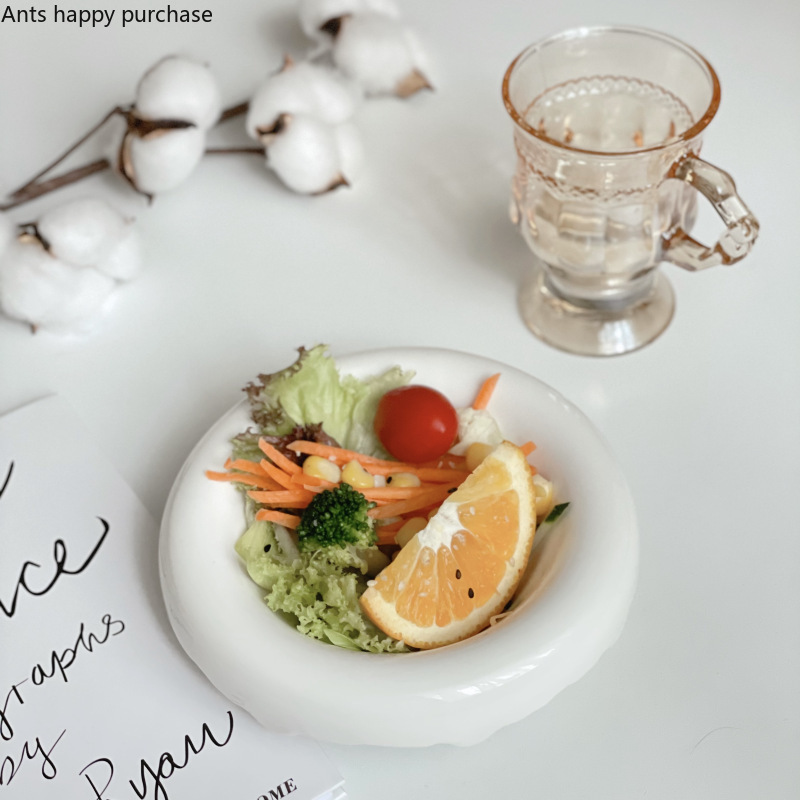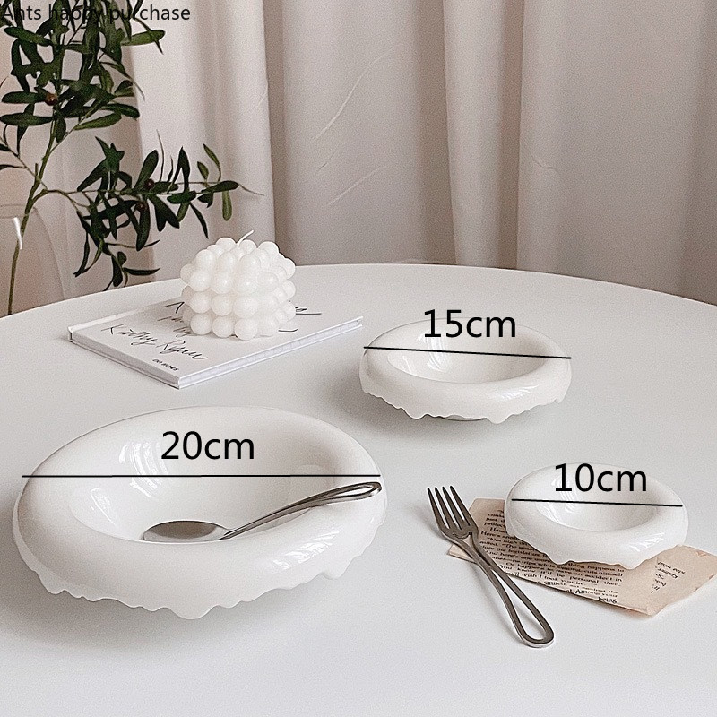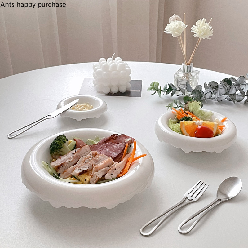 White Ceramic Dinner Plate Round Breakfast Plates Dessert Bowl Fruit Plate Salad Bowl Western Pasta Plates Snack Tray Fruit Dish
