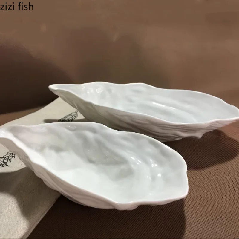 White Oyster Ceramic Bowl Hotel Tableware Dining Plate Fruit Plate Salad Bowl Dessert Bowls Cold Mixing Bowls Dim Sum Dish Tray