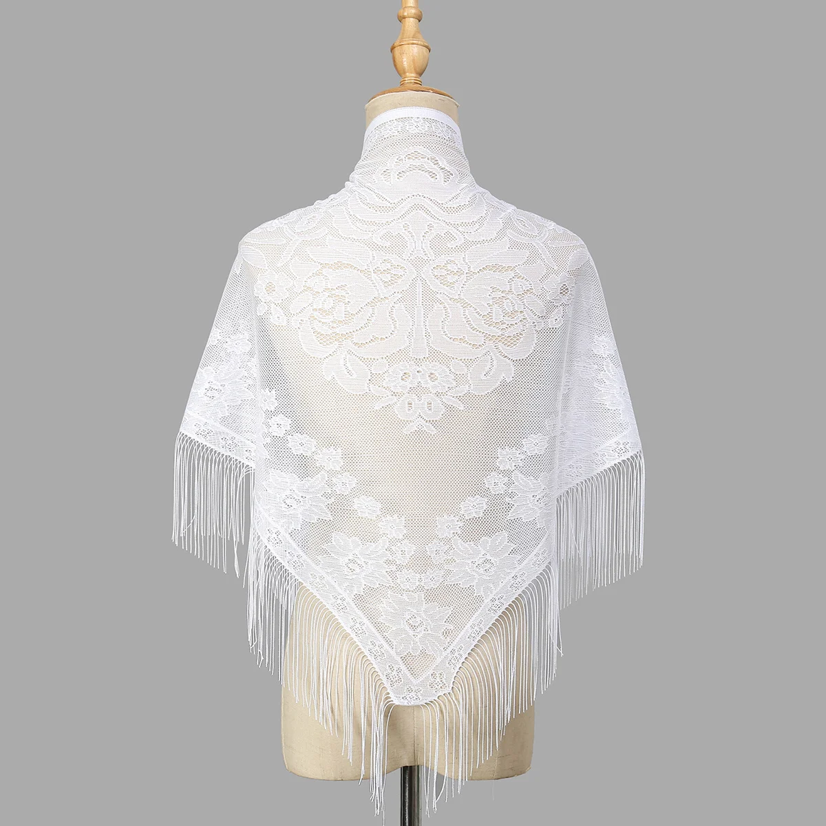 Women Embroidered Lace Tassel Scarf Shawl Triangle Fringe Solid Color Shawls Fashion Lightweight Prayer Hijab Headscarf Veils