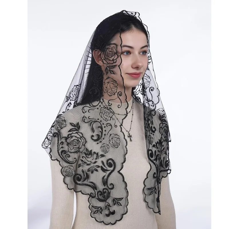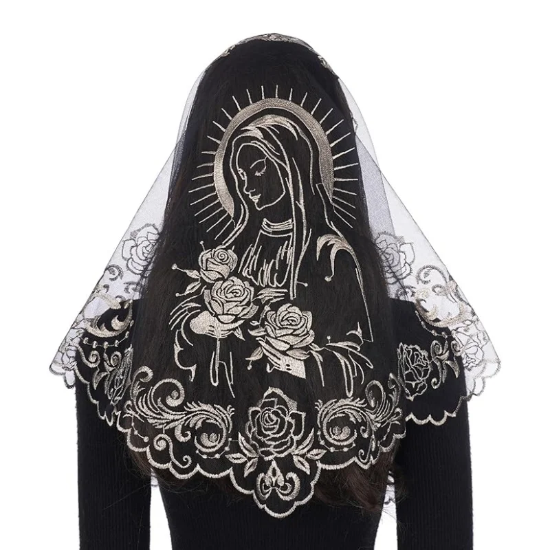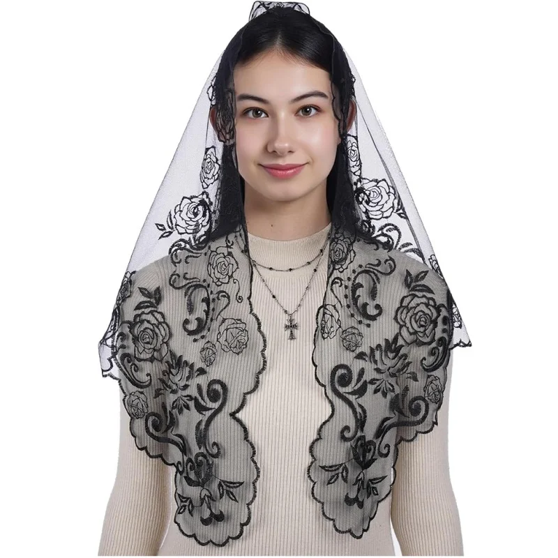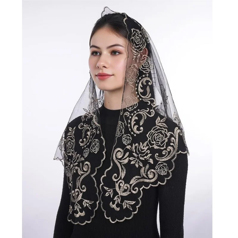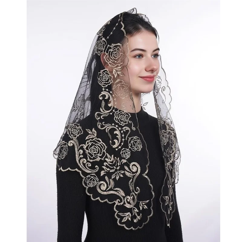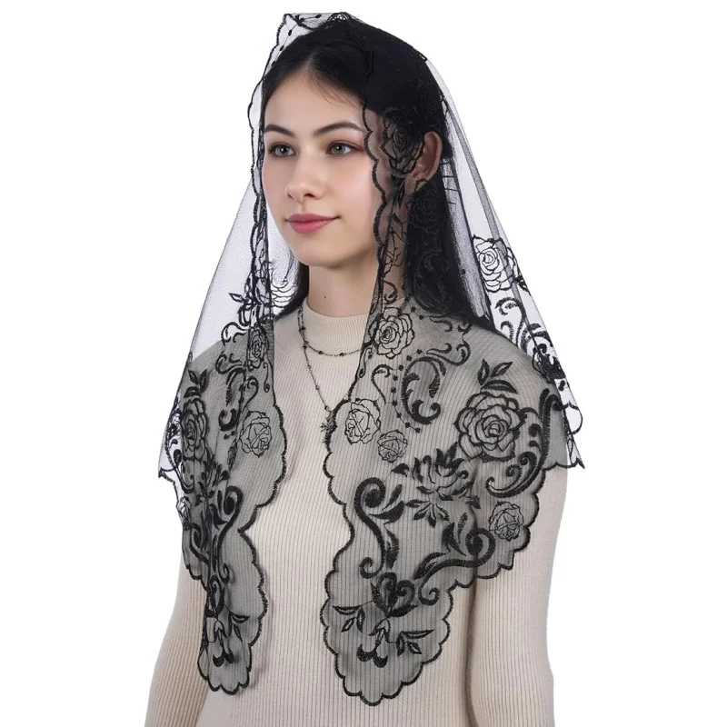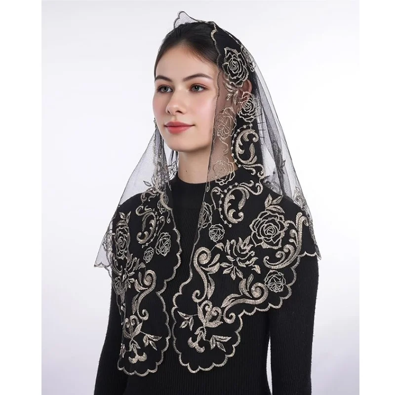 Spanish Style Triangular Lace Shawl Chaepl Embroidery Women Head Covering Catholic Veil