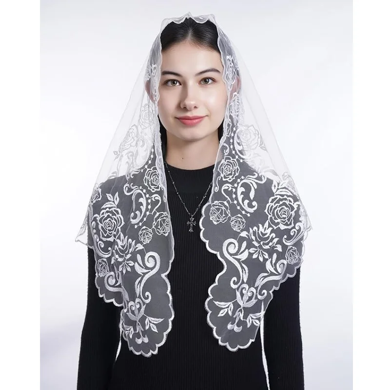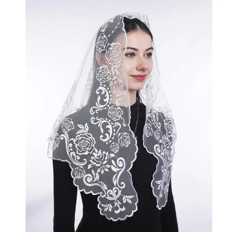 Women Head Covering Bridal Wedding Embroidery Catholic Church Veil