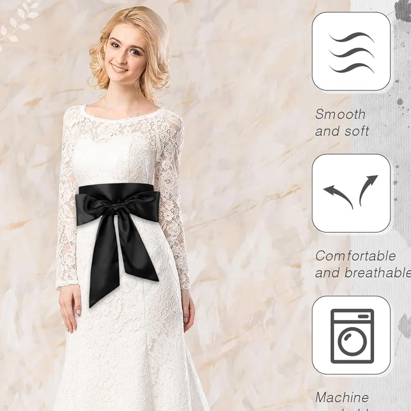 Women Sash Belt for Bow Dress Long Satin Waist Belt for Wedding Party Special Occasion