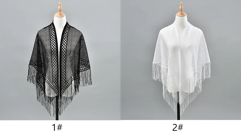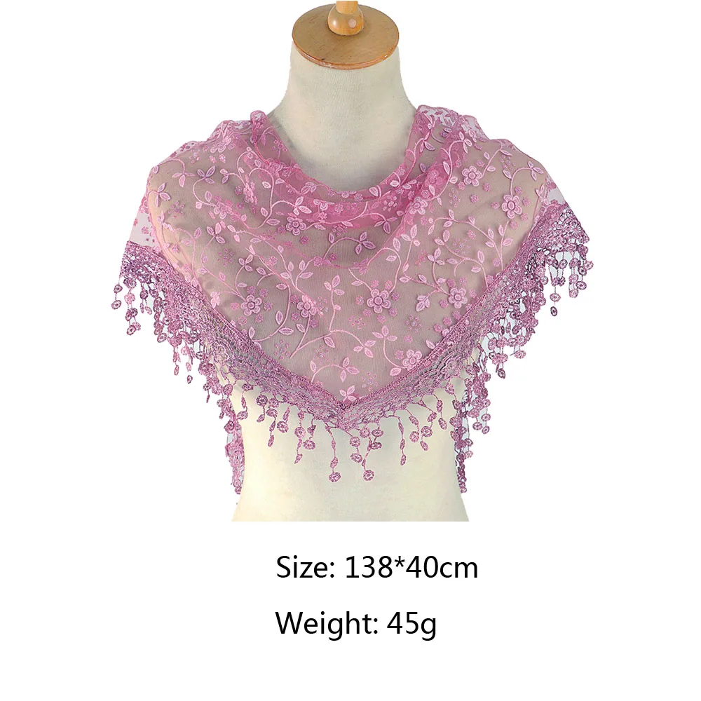Fashion Lace Tassel Sheer Triangle Scarf Women Hollow Out Floral Scarves Shawls