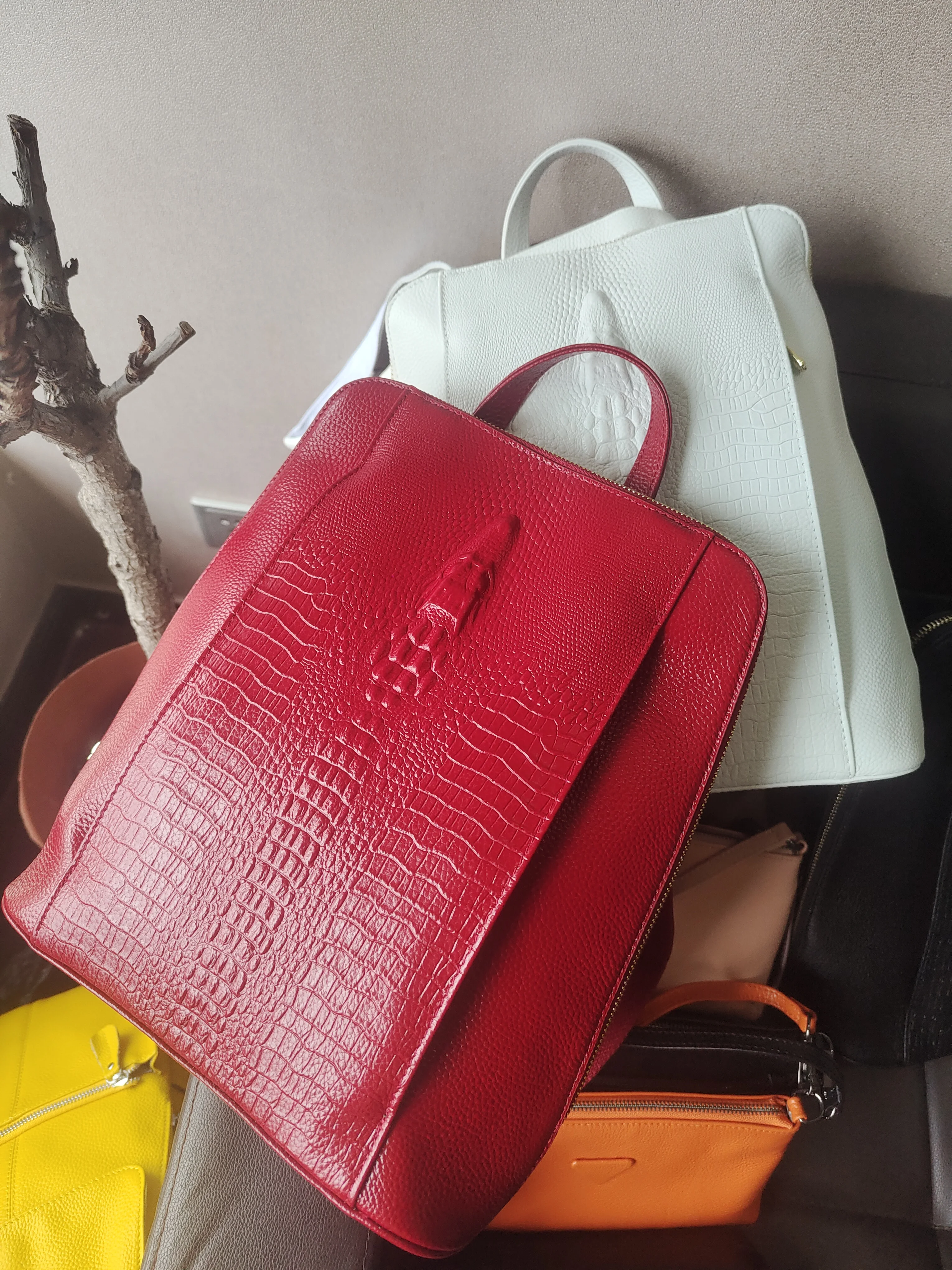 Zency Women's Crocodile Leather Backpack 100% Genuine Natural Travel Work School Bag with Notebook Compartment Laptop Carry-on